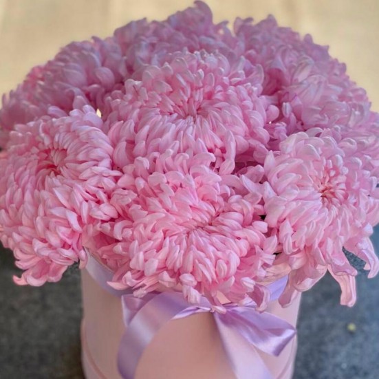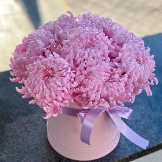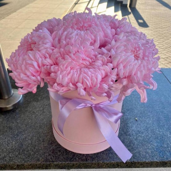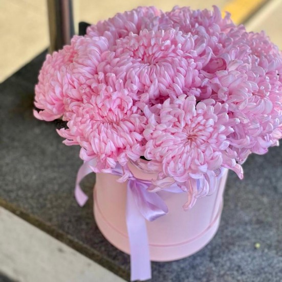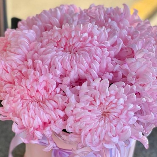 9 розовых хризантемы в коробочке в Орле