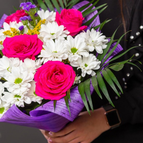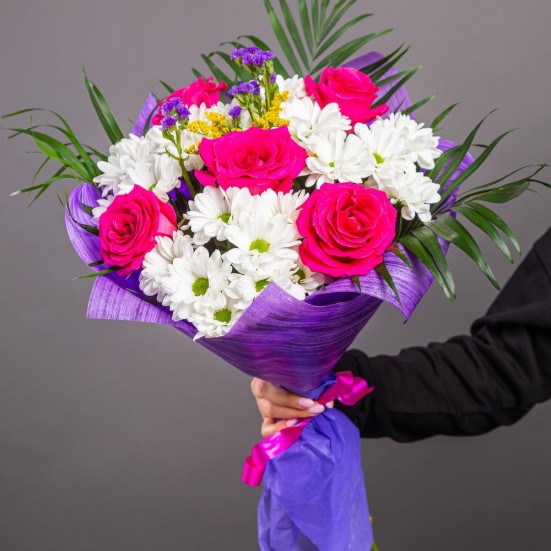Букет из 5 роз и хризантем в Орле