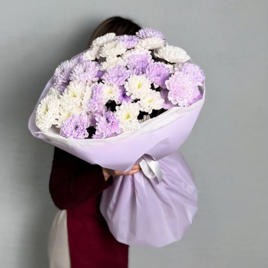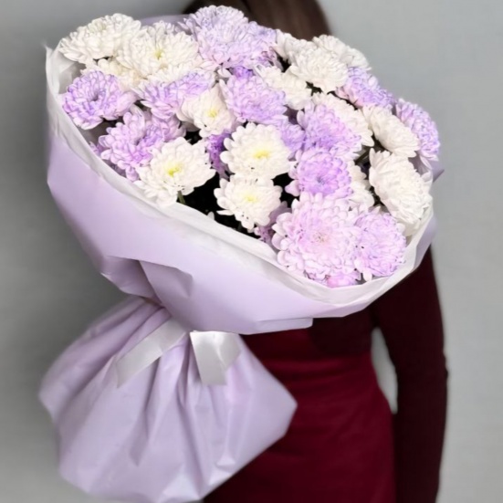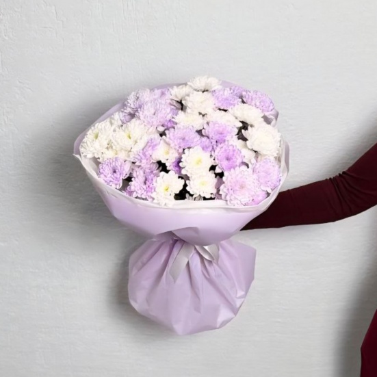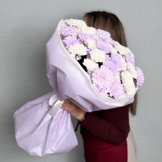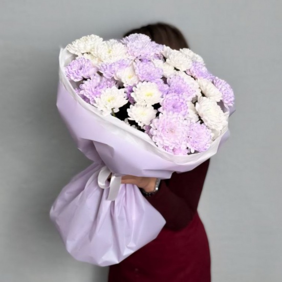 Букет из 9 фиолетовых и белых хризантем в Орле