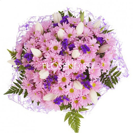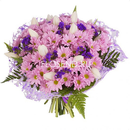 Букет из хризантем и тюльпанов