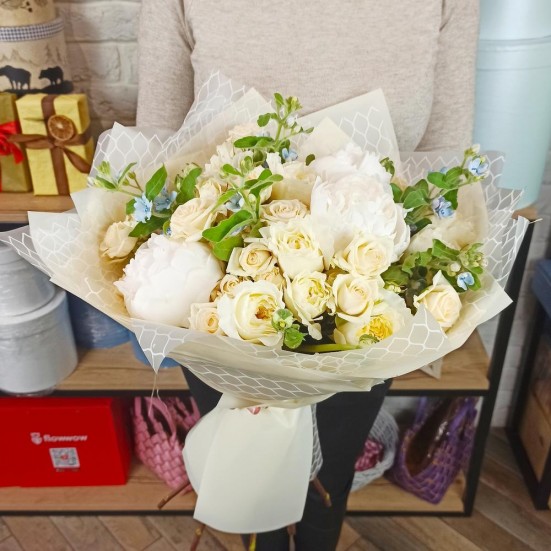 Большое вам СПАСИБО!!! Покупала в подарок мамочке, она была очень рада! Букет был упакован аккуратно, так что подарок на День Рождения УДАЛСЯ! Единственное, курьер опоздал почти на 10 минут, но на улице шел сильный дождь и были большие пробки, поэтому я не расстроилась, к тому же он извинился за опоздание, что в доставках очень редко делают. Буду заказывать еще)))