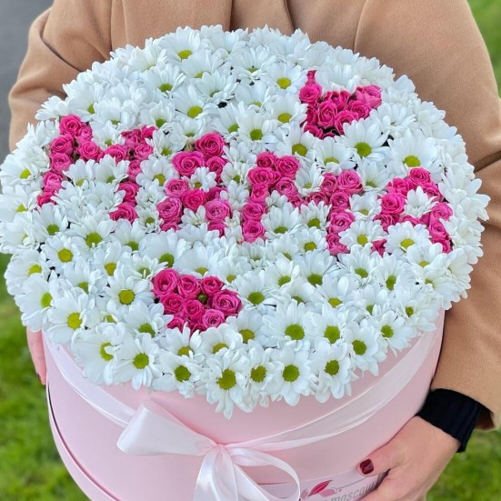 Хризантема ромашковая и роза в коробке Маме в Орле